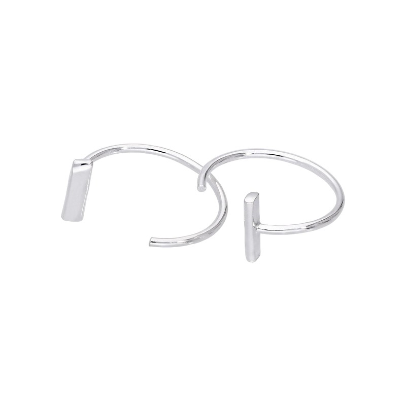 Sterling Silver Minimalist Flat Rectangle Bar Pull Through Open Hoop Earrings