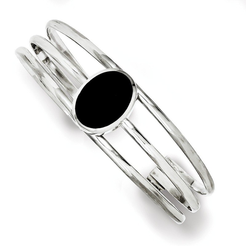 Sterling Silver Onyx Three Strand Cuff Bangle Bracelet