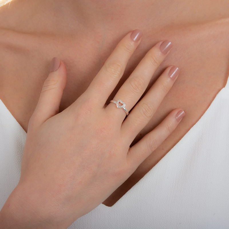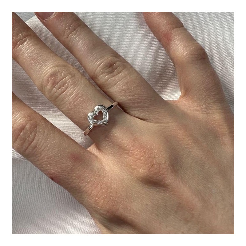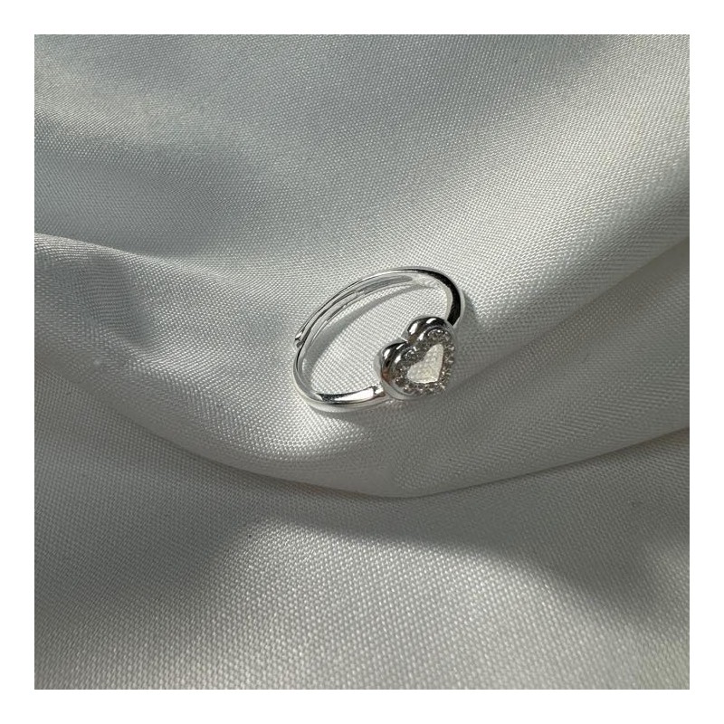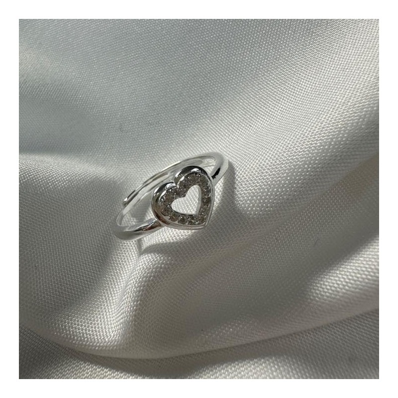 Sterling Silver Open Heart Clear CZ Adjustable Ring