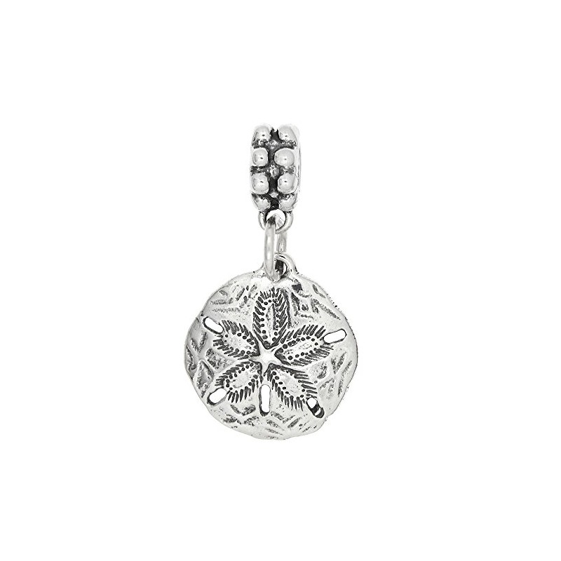 Sterling Silver Oxidized Large Textured Sand Dollar Dangle Bead Charm