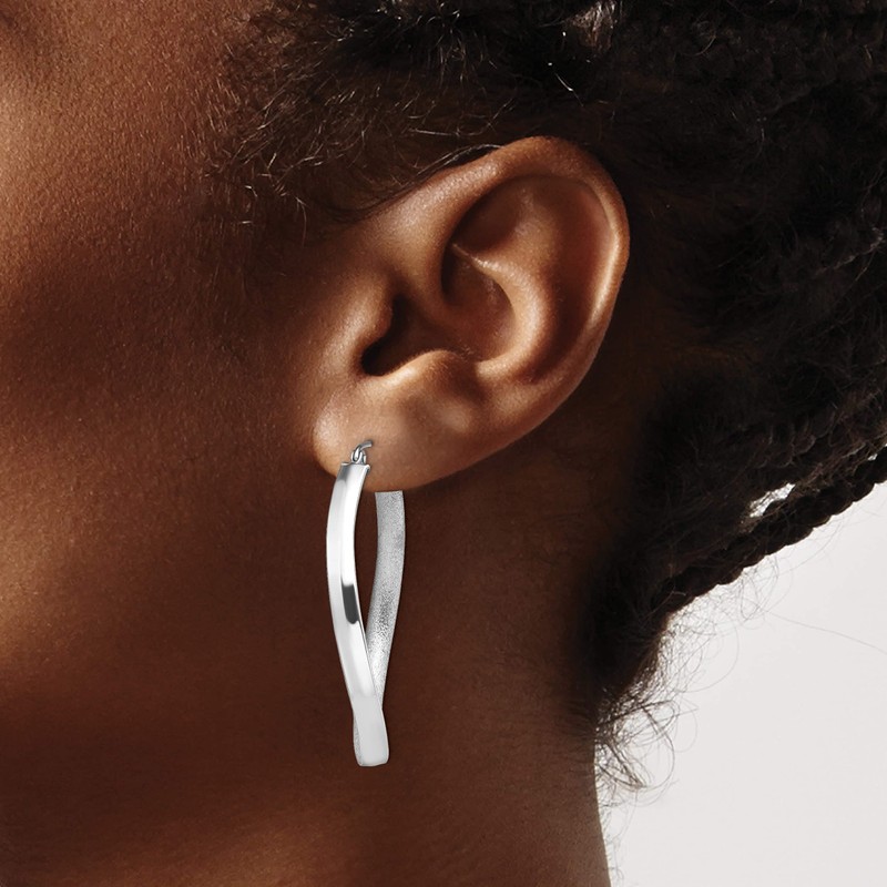 Sterling Silver Rh-Plated Polished/Textured Twisted Hoop Earrings (37 X 26) Made In Indonesia qe8285
