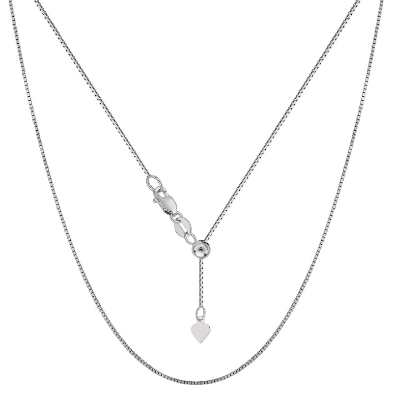 Sterling Silver Rhodium Plated Adjustable Box Chain Necklace, 0.7mm, 22"