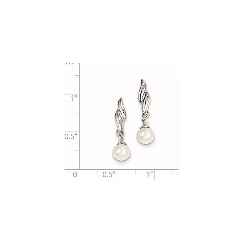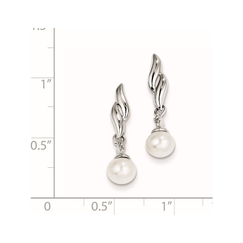 Sterling Silver Rhodium Plated Diamond & Fw Cultured Pearl Post Ear (Length=22) (Width=6)