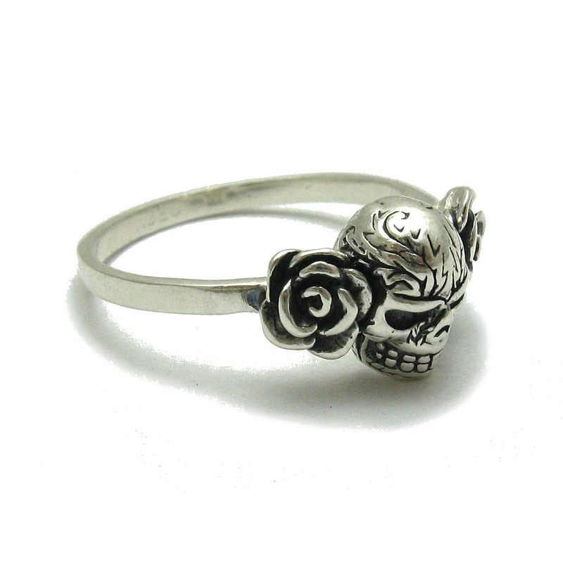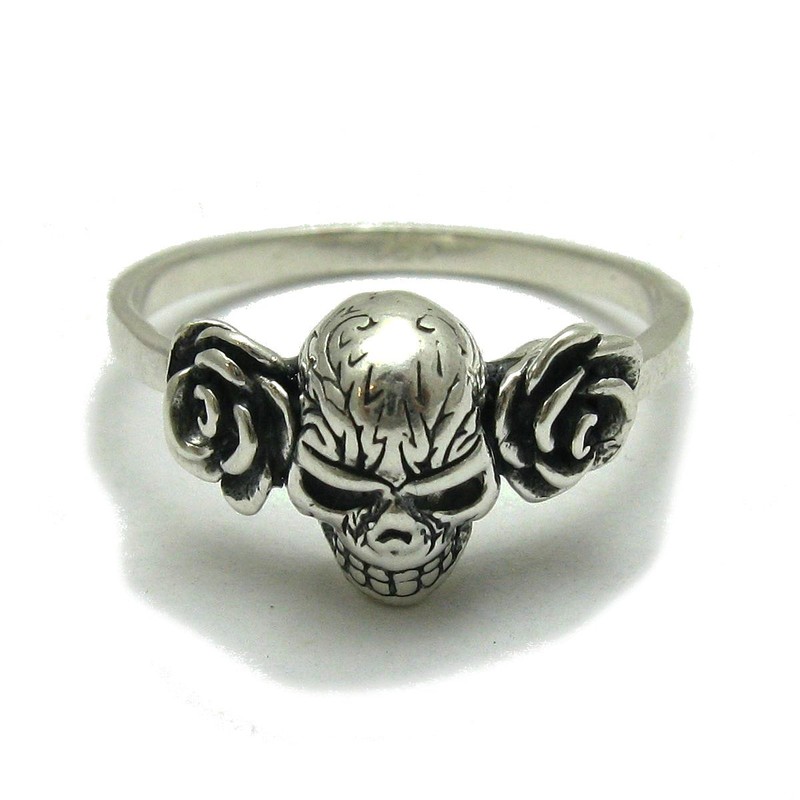 Sterling silver ring solid 925 Skull and roses R001751
