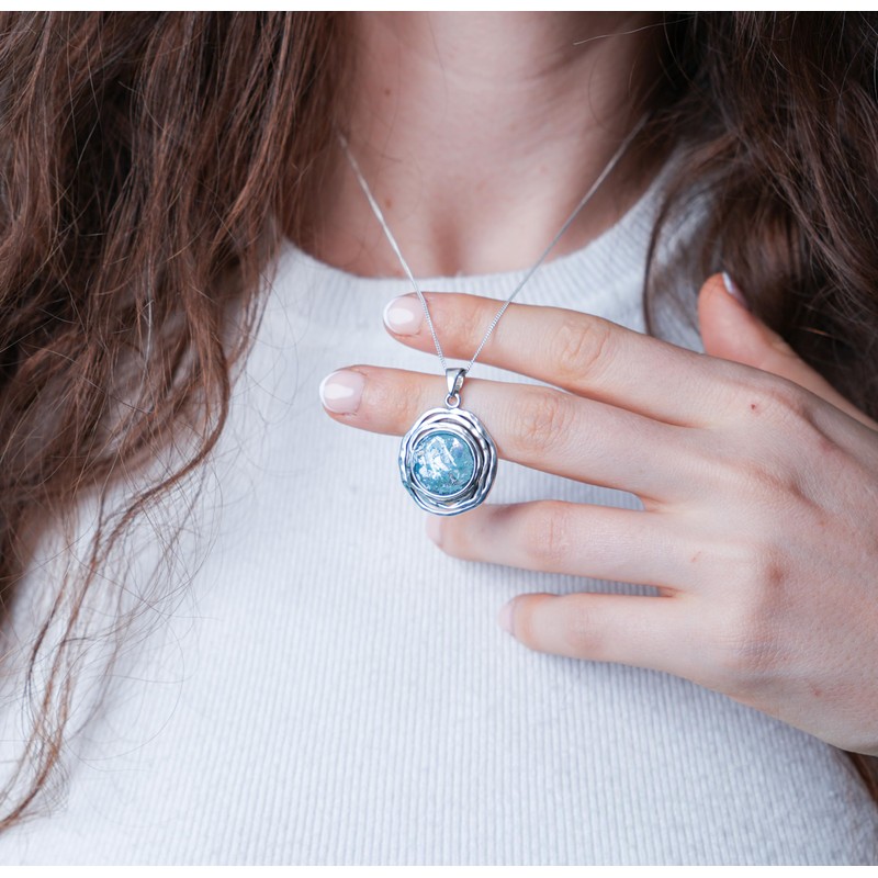 - AUTHENTIC MATERIAL: Features genuine ancient Roman glass, preserved for centuries and now beautifully showcased in a modern pendant design