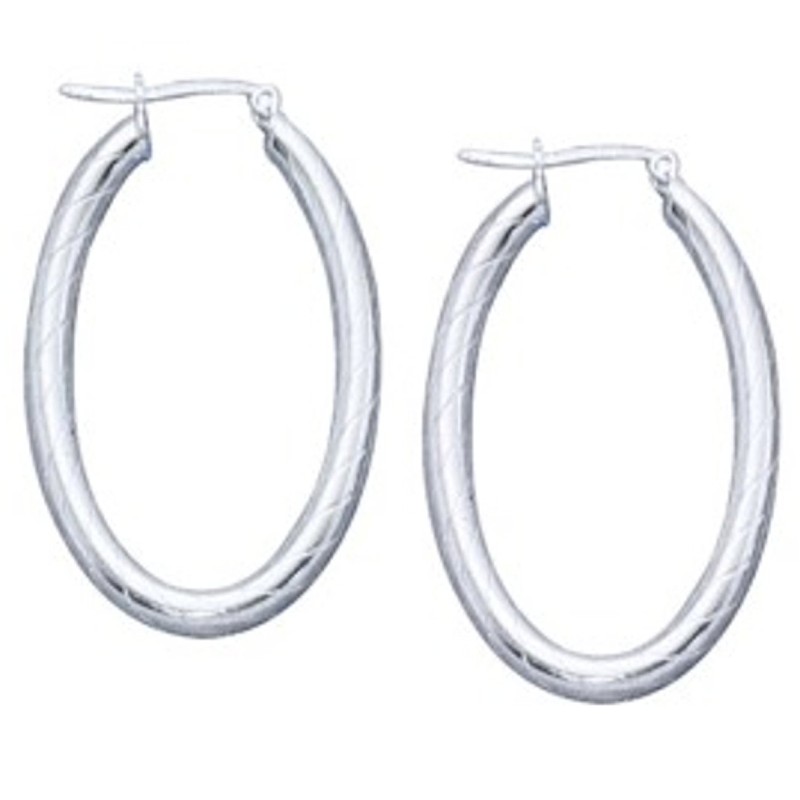 Sterling Silver Rounded Rectangle Hoop Earrings Diagonal Lines