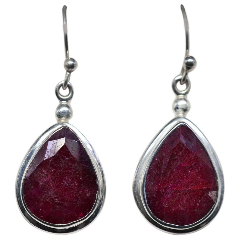 Sterling Silver Ruby Earrings 10.17g, Sterling Silver, Ruby