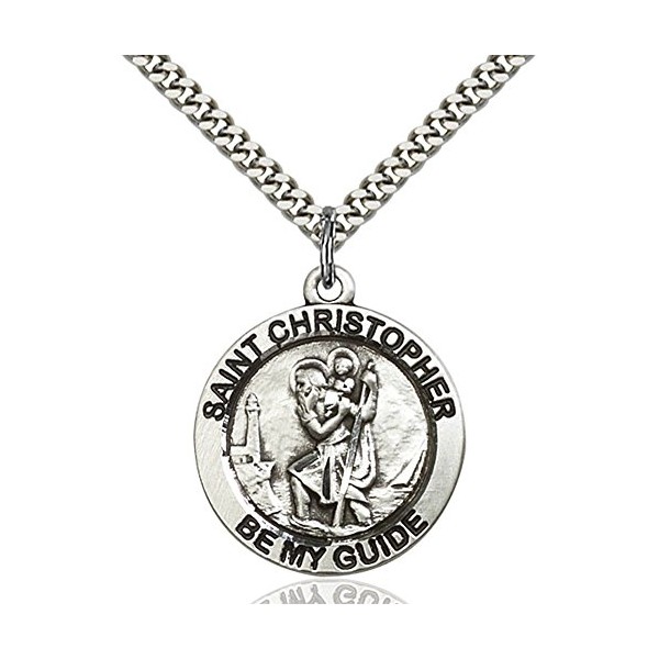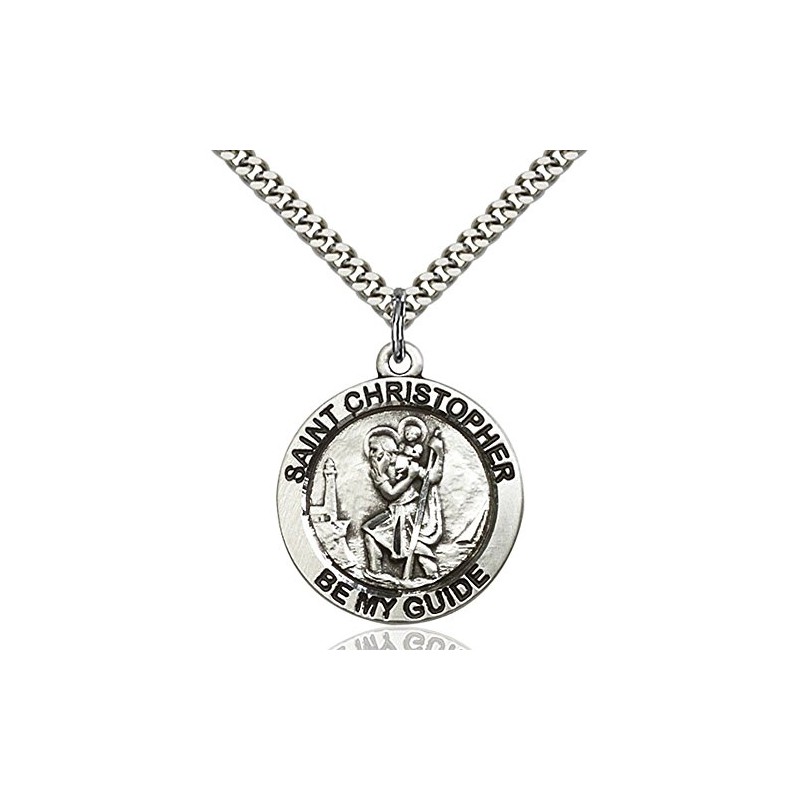 Sterling Silver Saint Christopher Pendant Medal, 1 Inch