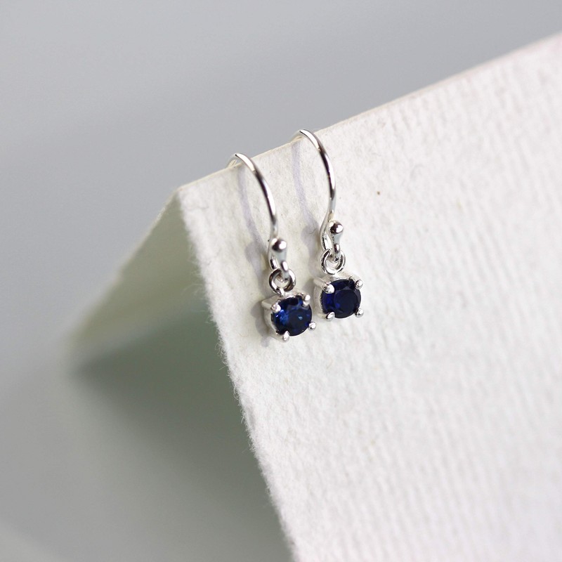 Sterling Silver Sapphire CZ September Birthstone Dangle Earrings , Fastening:Fishhook, Pin Length:21 mm, Number of Stones:2, Gemstone Measurement:3.5