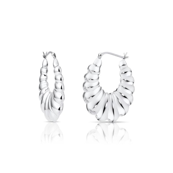 Sterling Silver Shrimp-textured Medium Oval Hoop Earrings