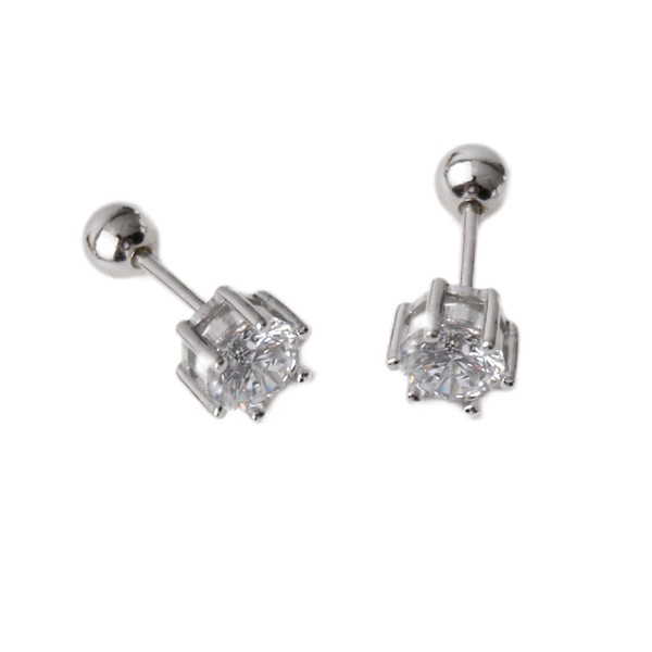 Sterling Silver Solitaire Simulated Diamond CZ Earrings Studs 5MM Screw Back Minimal Everyday Earrings