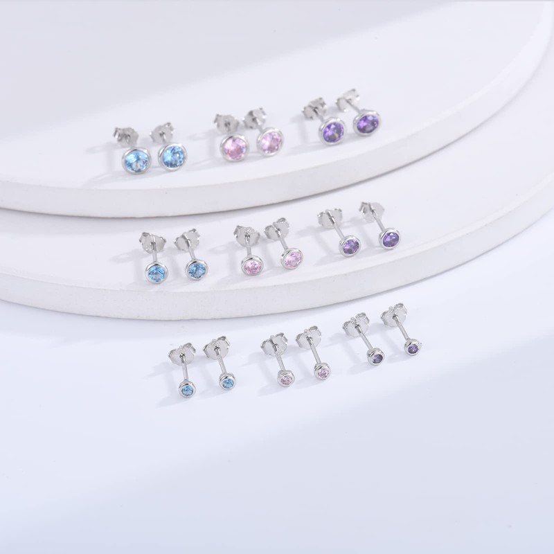 - 💜Classic Tiny Stud Earrings Set💜Package includes 3 pairs tiny Amethyst cubic zirconia stud earrings (2mm, 3mm, 4mm), meeting your needs of multiple piercings. Small stud earrings set is perfect for women, girls, men, ladies and kids. You can easily match together or share with your family and friends.
