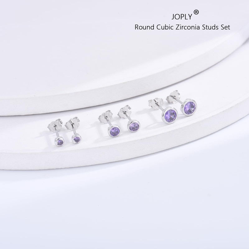 - 💜Classic Tiny Stud Earrings Set💜Package includes 3 pairs tiny Amethyst cubic zirconia stud earrings (2mm, 3mm, 4mm), meeting your needs of multiple piercings. Small stud earrings set is perfect for women, girls, men, ladies and kids. You can easily match together or share with your family and friends.