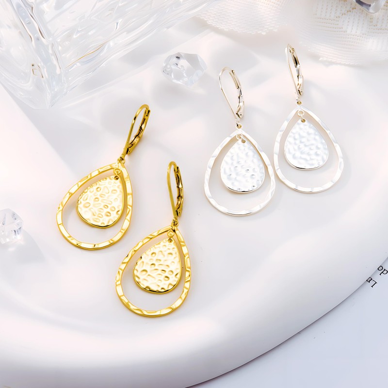 - Gold Leverback Earrings: This unique pair of textured gold teardrop dangle hoop earrings are handcrafted for you with great care from high-quality.Leverback ear wires make the earrings extremely convenient to wear. They are perfect for everyday wear and will be a great addition to your jewelry collection.