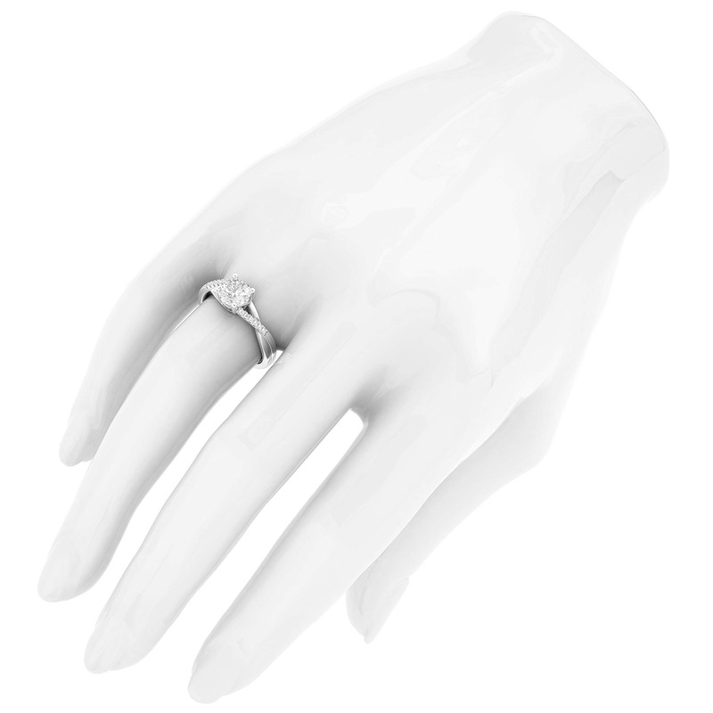 Ribbons of precious metal entwine around the center 1.0 CT simulated diamond in this elegant setting. Tapering small stones accents on each side add a delightful shimmer.