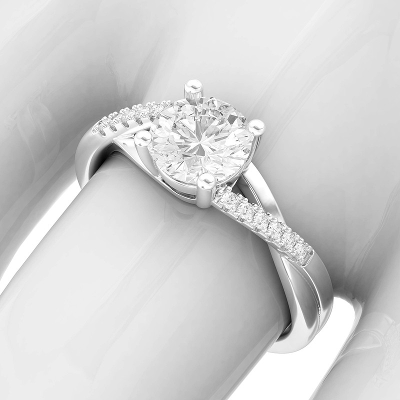 - This solid Sterling Silver Twisted Split Shank Simulated 1.0 CT Diamond Engagement Ring is highly polished. It is 4-prong set with 1 carat (6.5mm diameter, or 0.25inches) round brilliant cut clear simulated diamond. The special twisted split band shank measures 2.5mm in width. There are 12 stones in total set in sides. The stone is AAAAA quality, reflecting the sparkle same as diamonds do, which is very nice and attractive, making the ring look like real diamond ring.