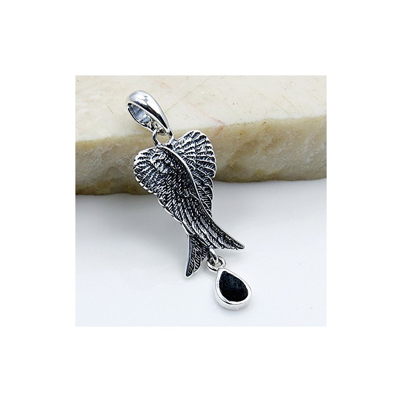 Sterling Silver Volcanic Lava Rock Angel Wings Pendant Essential Oil Diffuser
