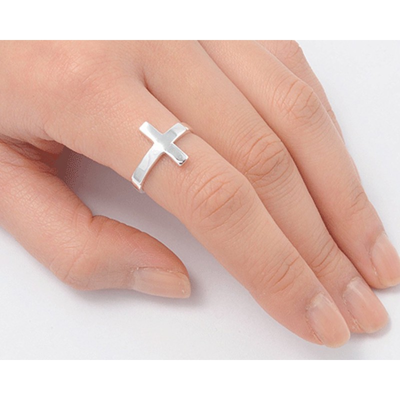 Sterling Silver Women's Sideways Cross Ring Fashion 925 Band 13mm Size 10