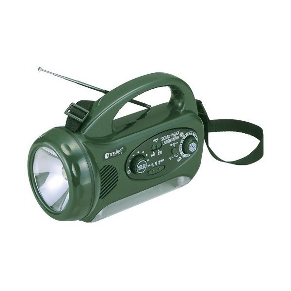 - Functions: Light, fluorescent light, AM/FM radio, siren, splash proof