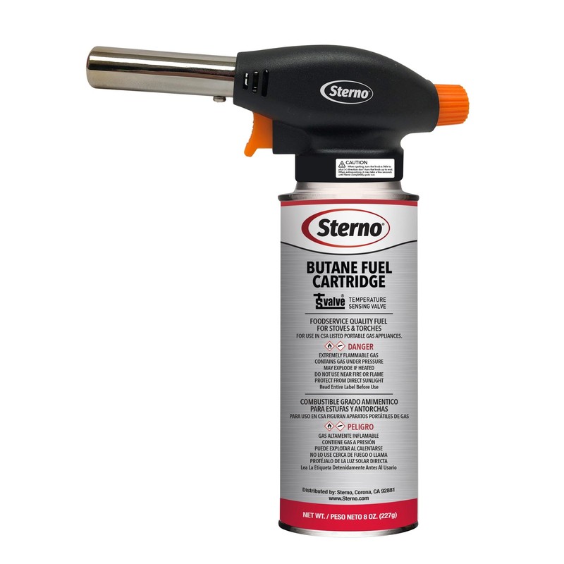 Sterno Butane Torch Lighter - Kitchen Blow Torch & Butane Torch for Cooking, Butane Torch Head with Automatic Safety Shut-Off Sensor - Compatible with Most Butane Fuel Canisters - 1 Handheld Torch