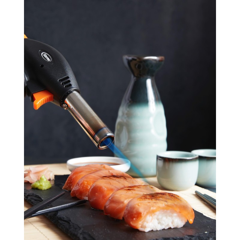 - Advanced Safety Features for Safe Operation: Whether you're a pro or not, charring or roasting food will be a breeze with our handheld torch! It features a piezoelectric ignition with a lock, an anti-flare design, and an automatic shut-off sensor.