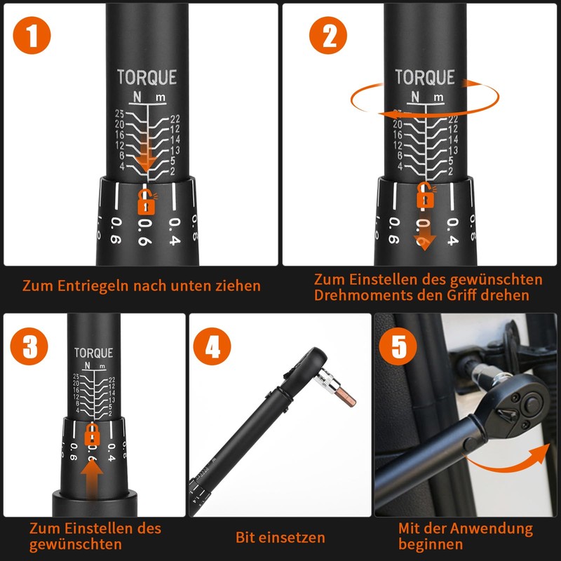 - Measuring range: precise torque wrench with a measuring range of 2-24 NM and an accuracy of ±3% for exact torque adjustment