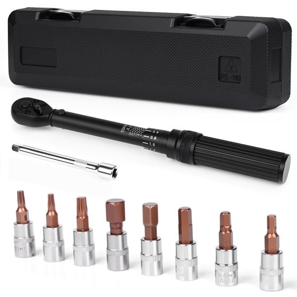 SternSinn Torque Wrench Set, 2-24 NM, 1/4 Inch, 11-Piece with Extension Rod and Sockets for Bicycle and Motorcycle