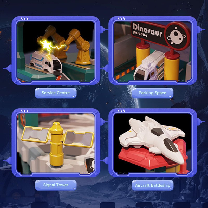 - Quality gifts for children: Are you looking for a gift that promotes creativity and entertains your children? It is definitely an ideal gift for children when parties are pending. Assemble it to promote your child's thinking and craft skills. It can also be combined with two other car parks to create a mega cosmic dinosaur parking lot