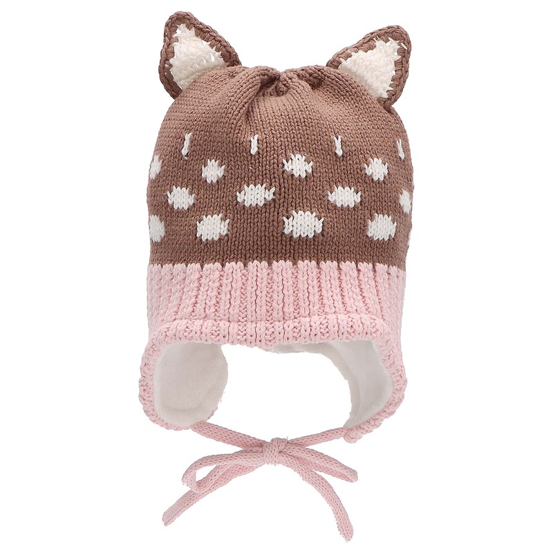 Sterntaler Baby Girl Knitted Hat Baby Knitted Hat Ears and Dots Hat - Baby Knitted Hat - Made of Cotton with Tie - Brown, 39, brown