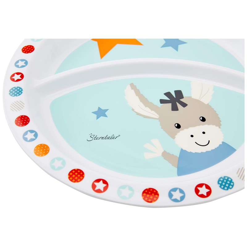 - Box contents: 1 Sterntaler baby plate, Emmi donkey, age: for babies from 6 months, light blue/multi-coloured