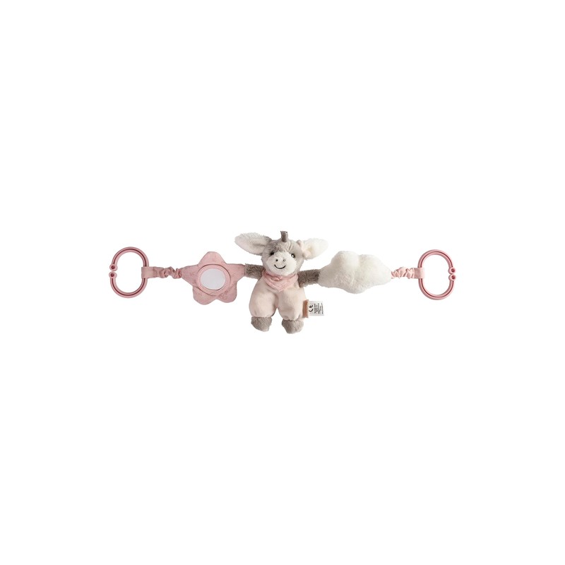 - Girls' pram chain with toy donkey Emmi Girl, small cloud and flower with mirror. Thanks to the open C-ring and integrated elastic band, there are flexible attachment options for the cute toy.
