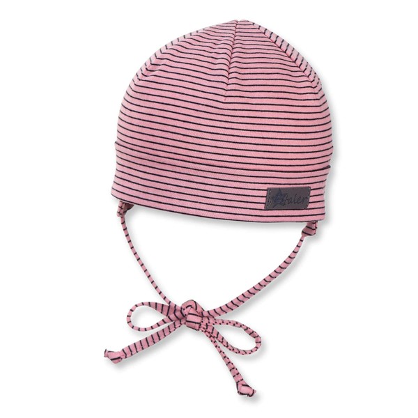 Sterntaler Girls Beanie with Ties and Striped Pattern, pink