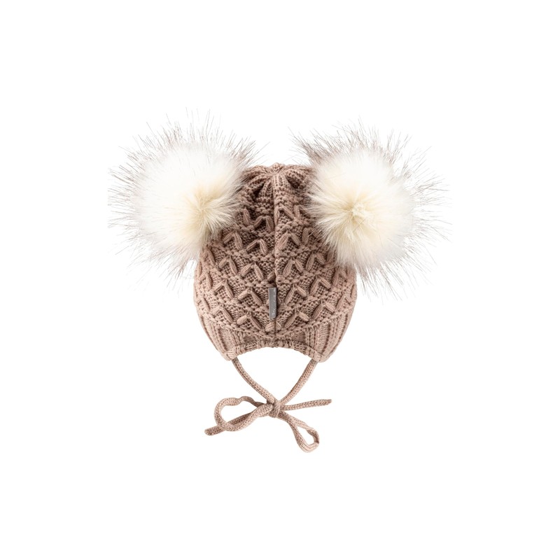 - For girls – warm baby girl hat with faux fur pompoms. The material is soft and supple and does not cause pressure points on the head.