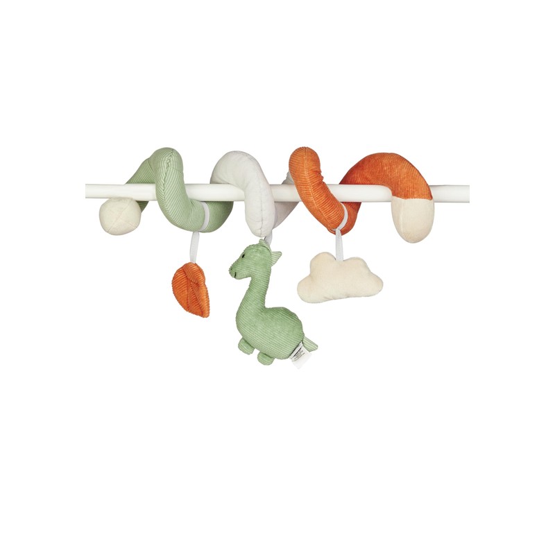- Child-friendly design – the colourfully designed baby toy with the small Dino Rexi has a rattle and is flexible to attach to baby seat, baby bed, playpen or pushchair.