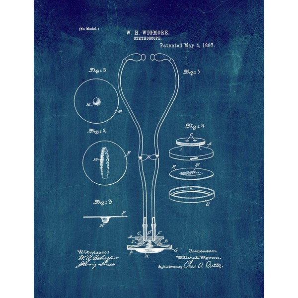 Stethoscope Patent Print Midnight Blue (5" x 7") M12365