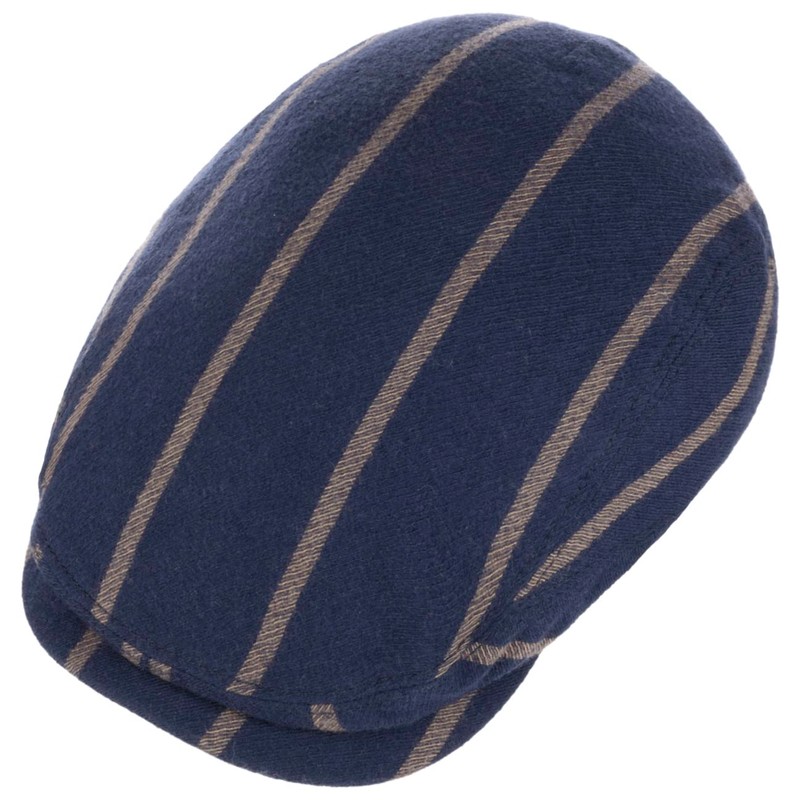 Stetson Contrast Stripes Wool Flat Cap Peaked Cap Flat Cap Men Wool Cap Made in Germany with Lining Peak Autumn Winter, darkblue