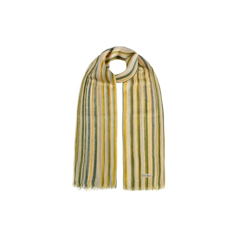 Stetson Lurano Wool Sommerschal Wollschal Streifenschal Damen/Herren - mit Fransen Frühling-Sommer Frühjahr Sommer - One Size blau-grün