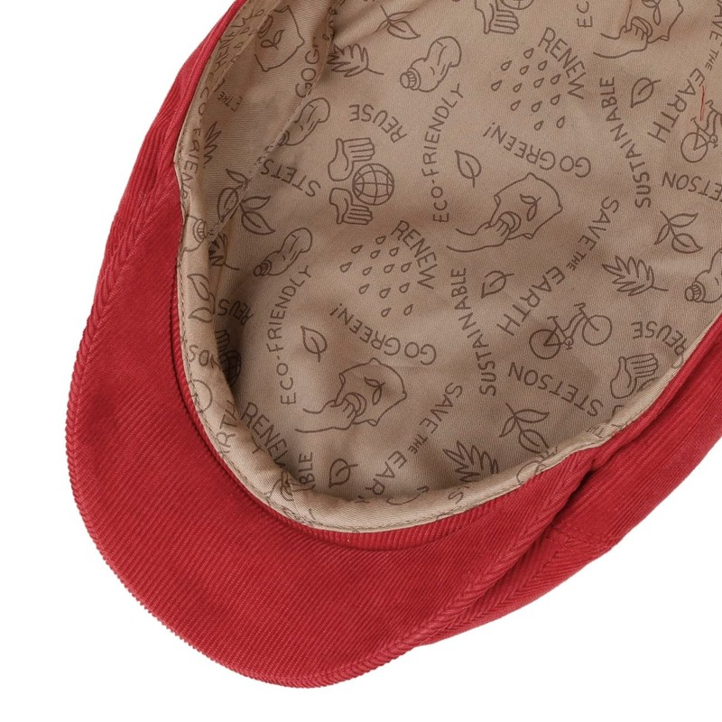 Stetson Sustainable Corduroy Ivy Flat Cap - Plain Hat - Classic & Sustainable - Men's - Winter Hat - Made in the EU, darkred, M