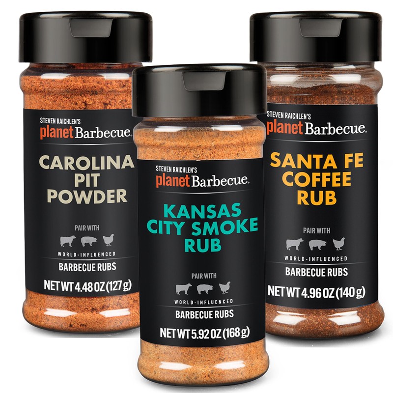 - American BBQ Flavors- Kansas City Smoke, Carolina Pit Rub, and Santa Fe Coffee