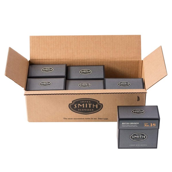Smith Teamaker | British Brunch No. 18 - Assam, Ceylon & China Black Tea | Sugar-Free, Non-GMO, Plant Based Caffeinated Full Leaf English Breakfast Black Tea (90 Sachets, 6 Packs of 15)