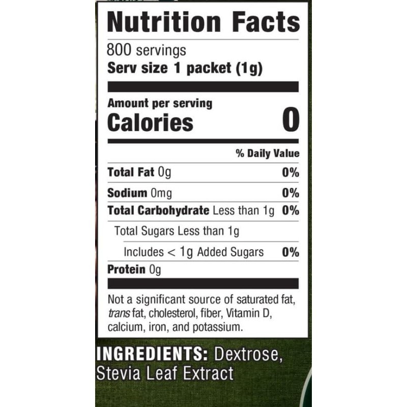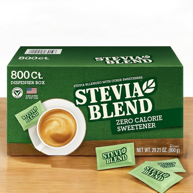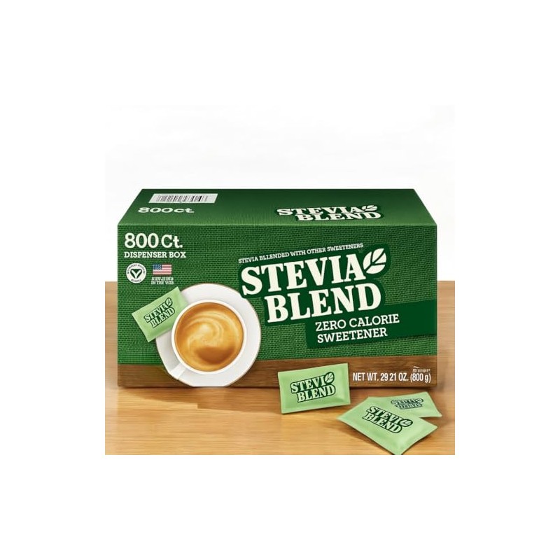 Enjoy natural sweetness without calories using this plant-based stevia sweetener. Each packet offers the equivalent sweetness of two teaspoons of sugar, making it a great zero-calorie substitute for coffee, tea, and more. Perfect for health-conscious lifestyles, these packets are vegan, gluten-free, and have a low glycemic impact. This 800-count box ensures you always have convenient, pre-portioned sweetener on hand — whether at home, work, or on the move. Inspired by stevia in the raw and other natural sweetener blends, it brings you a clean, satisfying sweetness with none of the guilt.