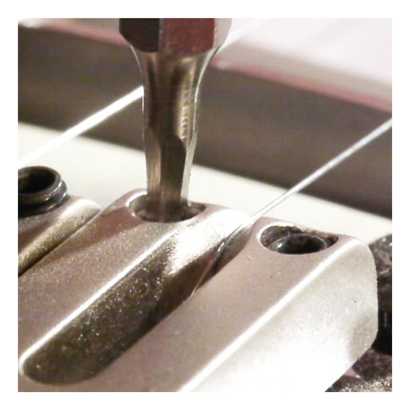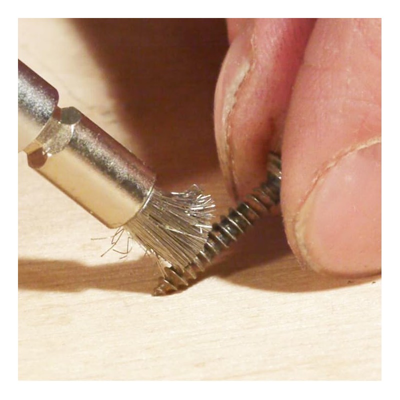 - Mini wire brush: removes corrosion from bridge saddles and other hardware