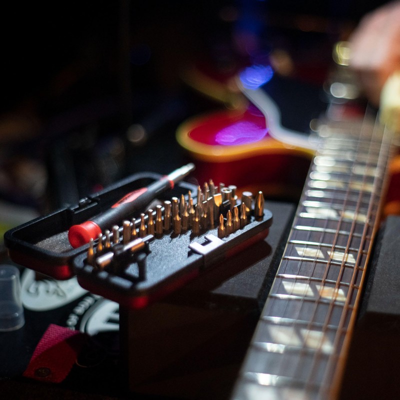 - GUITAR TECH TOOL SET: 36-bit screwdriver set designed for precise guitar hardware adjustments, repairs, and maintenance