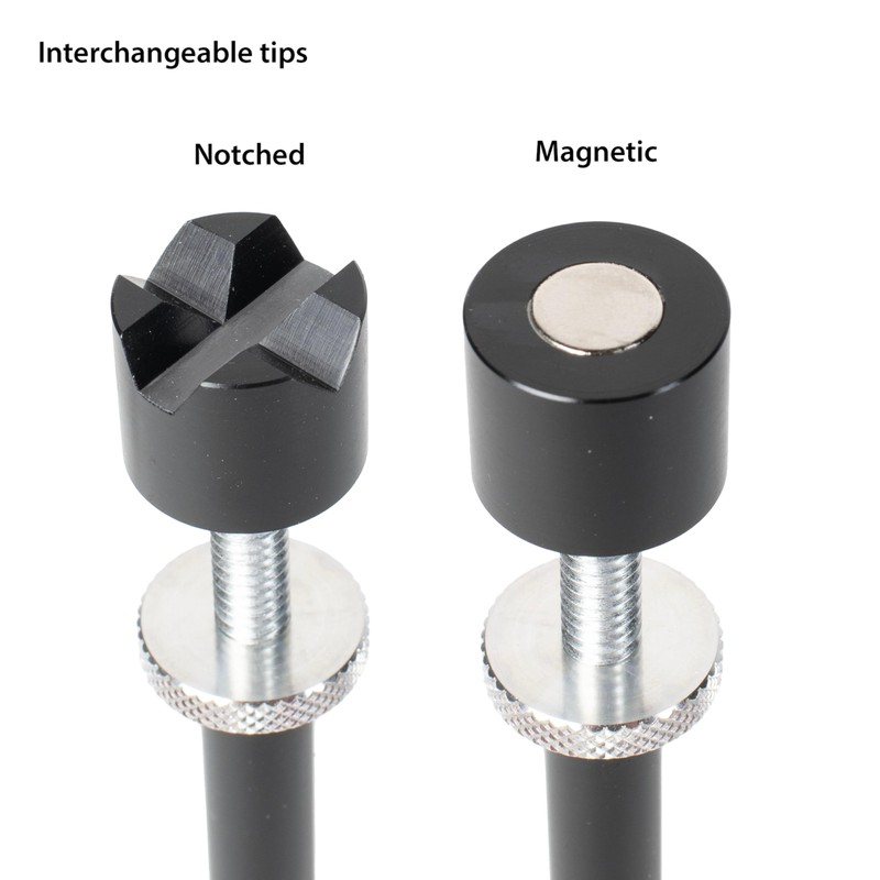 Versatile with interchangeable heads: The notched tip grips braces securely, while the magnetic tip aligns repairs from inside to out. Soft rubber feet keep it stable without marking delicate surfaces.