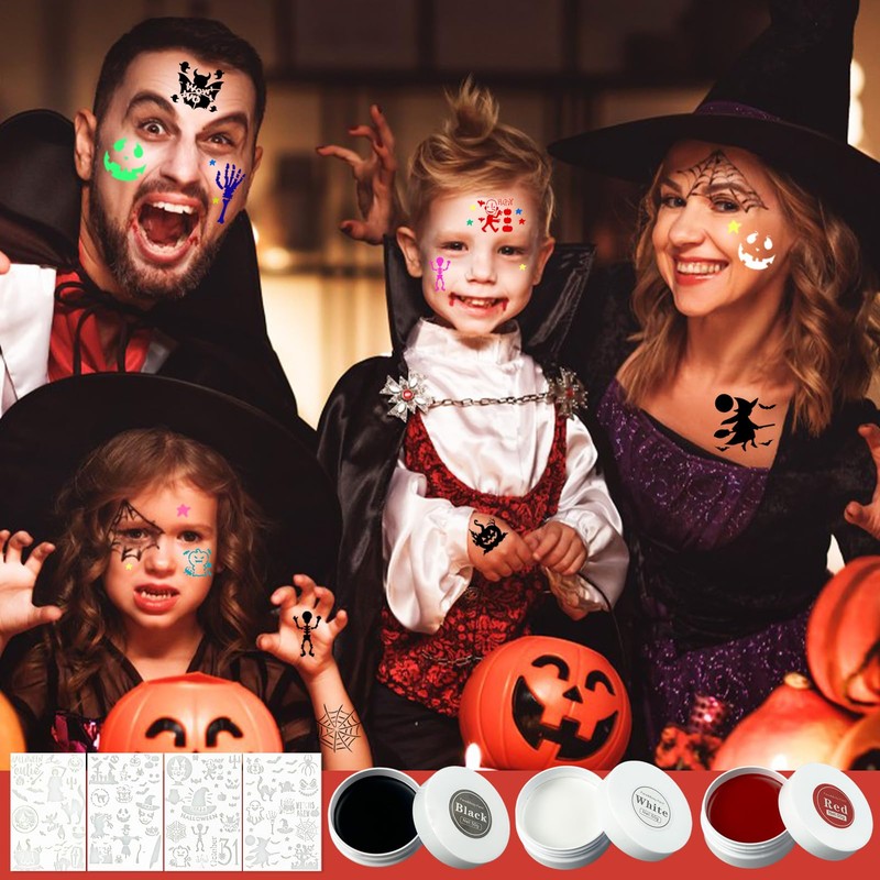 - Halloween Make Set: this Halloween makeup set is versatile: it attracts attention at Halloween themed parties, impresses at theatrical performances and artistic shows, and is great for fun pranks, unique photo shoots or video projects