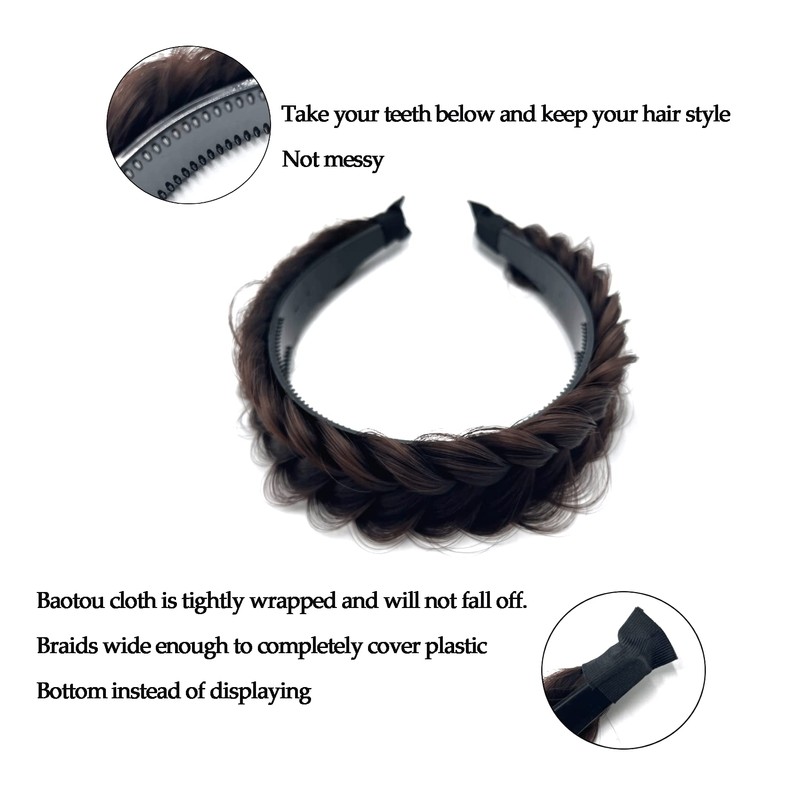Ventajas del producto: 1. La diadema trenzada desordenada está hecha de fibra sintética de alta calidad, que parece cabello real.