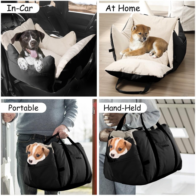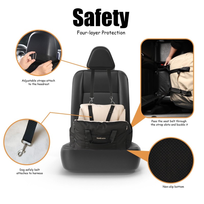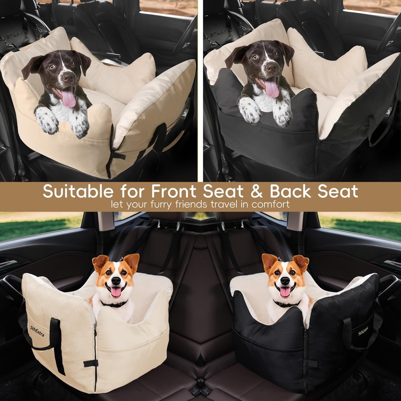 SthExtra Dog Car Seat for Small Dogs, Portable Dog Booster Seat with 2 Safety Leashes, Waterproof and Comfortable with Thick Foam Filling, Pet Travel Carrier Bed with Storage Pockets (Black, Small)