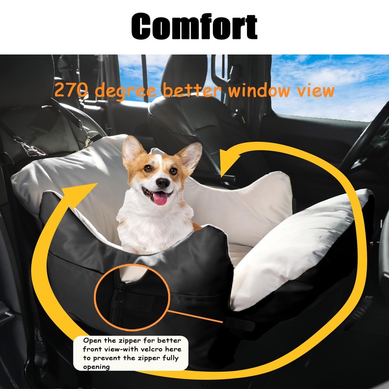 - Comfort: We believe it is important to make your dogs or cats feel comfortable when sitting in the pet booster and car seat in order to alleviate their anxiety on long journeys. With thick filling of chopped foam in every panel and reversible cushion with dual surfaces for different seasons, this car seat for small dogs provides optimal comfort and support during car rides. Large storage pockets on three sides offer ample space to store your pet's daily necessities.