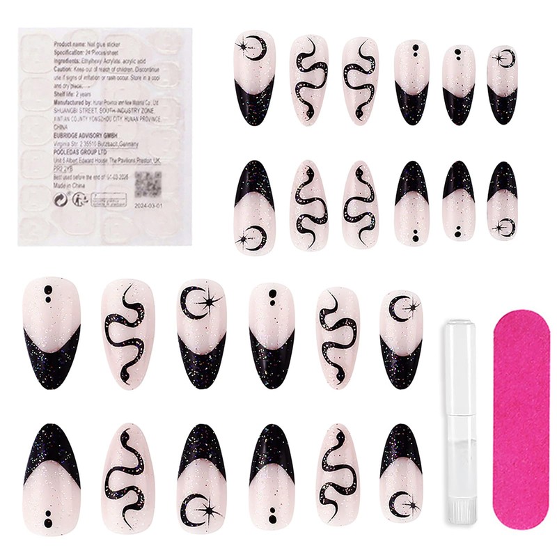 - 【Black Glitter False Nails】:24 pieces of press on nailsfrench tip look charming and elegant for your daily styles and date nights.12 different sizes of almond false nails can meet all your needs for nail decoration and make your nails glamorous