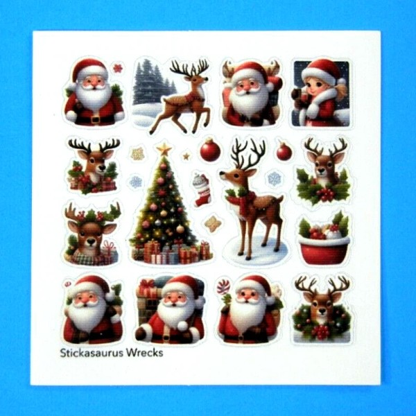 Sticker Sheet Is New. Sticker Brand Is Stickasaurus Wrecks. Sticker Theme Is Christmas Santa & Reindeer Stickers. Stickers Are Hand Crafted By Us Here At Stickasaurus Wrecks We Create, Print & Cut  Each Sticker To Ensure Quality Stickers For Our Buyers.